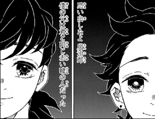 - 炭治郎が大好きな父と同じ赤い瞳、同じ言葉(価値観)を語っていたから